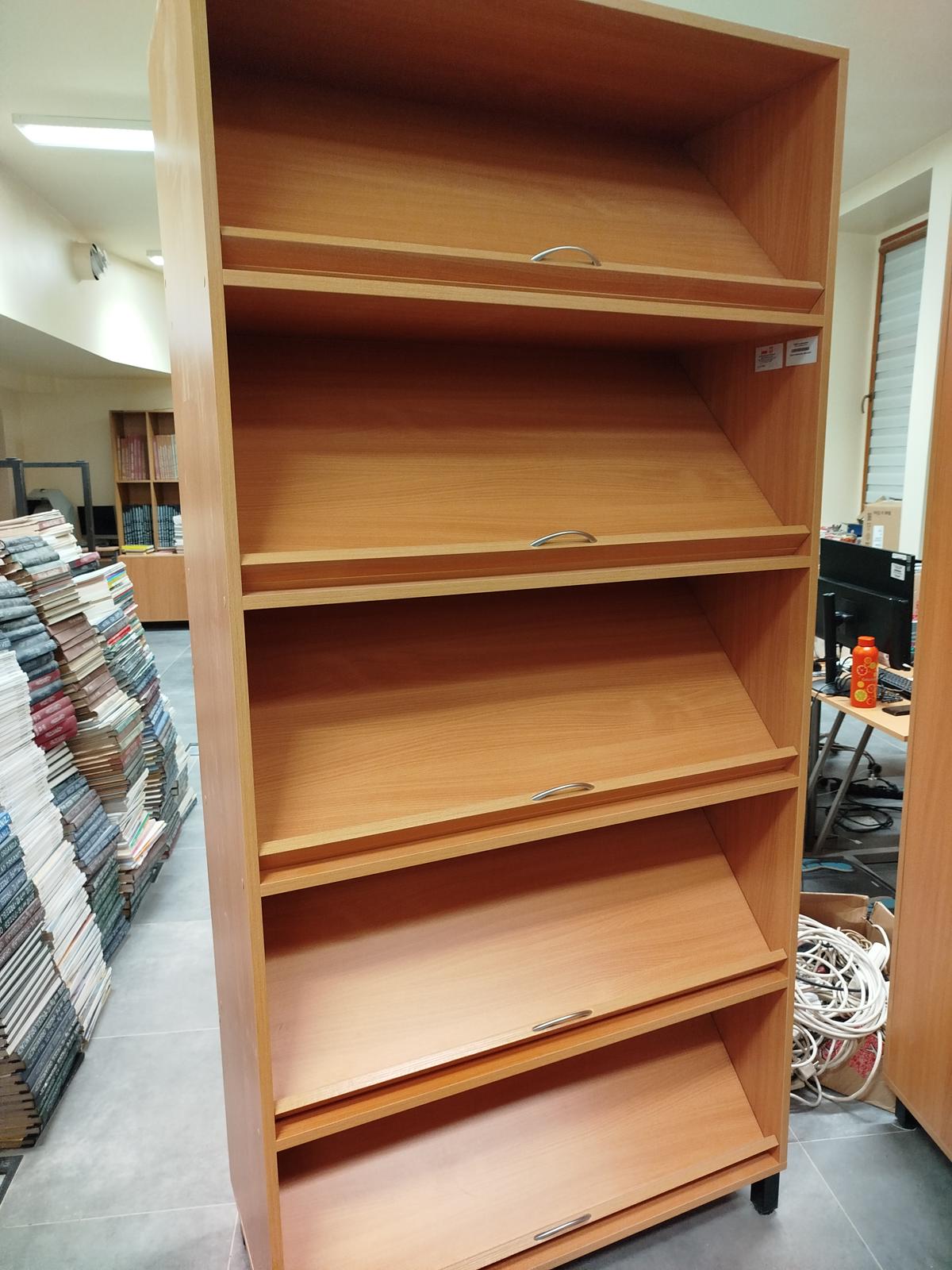Czytelnia Czasopism-regał biblioteczny z uchylnymi półkami