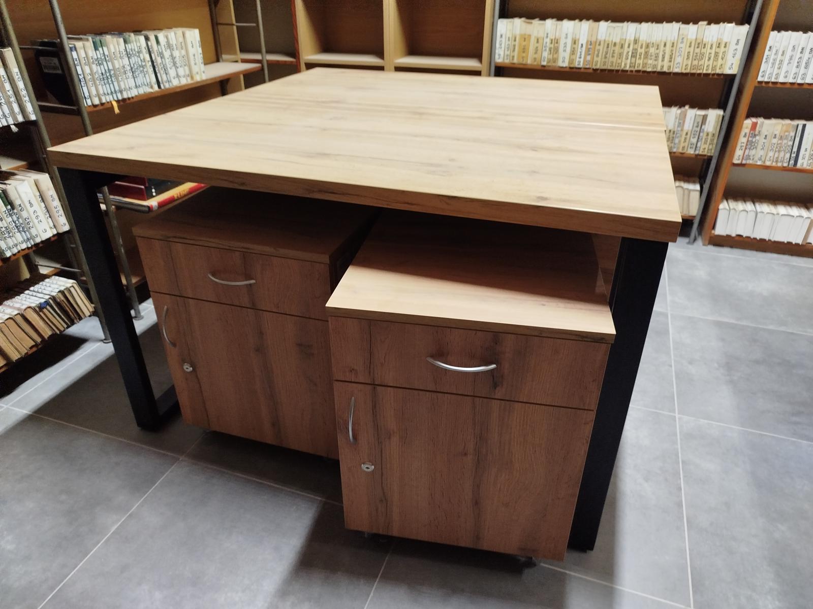 Czytelnia Naukowa-biurka na stelażu z kontenerkami